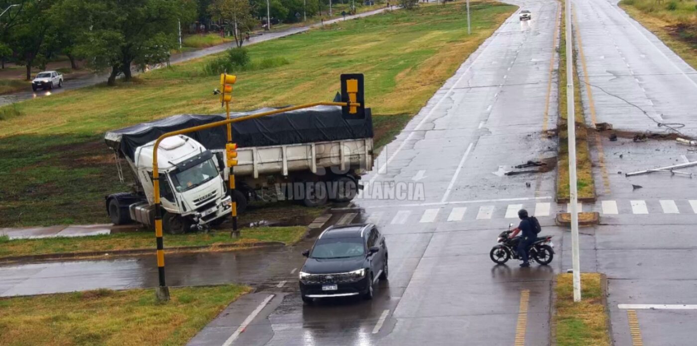 Siniestro vial en ruta 11: un camión perdió el control por la lluvia e impactó contra un semáforo y luminarias