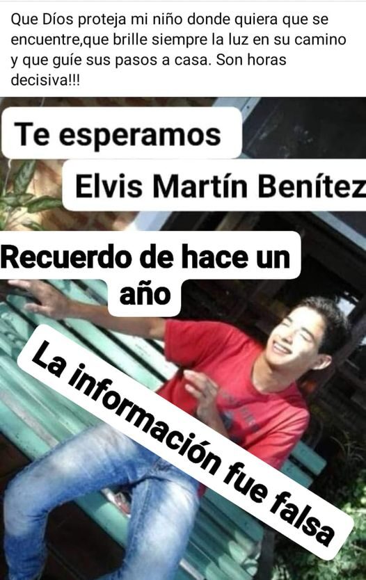 A punto de cumplirse un año de esa famosa e irresponsable llamada de un camionero diciendo que lo había visto a Elvis, (avaricia sin miramientos), despertando una ilusión en esa mamá desesperada por encontrar a su hijo, siempre cabe la pregunta…¿Dónde está Elvis Martín Benítez?, ¿Se lo sigue buscando?, ¿Cómo está la causa?, interrogantes pareciera sin respuestas.