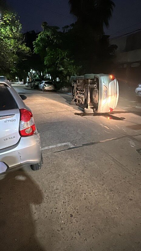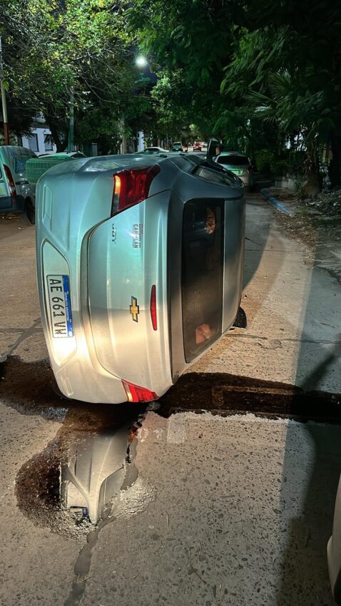 El conductor manifestó que no recuerda si se quedó dormido al volante o sufrió una descompensación, lo que habría provocado que perdiera el control del auto e impactara contra un Toyota Etios gris (dominio AD065RZ) que se encontraba estacionado. En el intento por maniobrar luego del impacto, el vehículo terminó volcando sobre la vía pública.