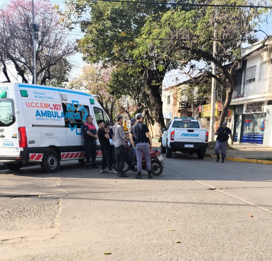 Un accidente de tránsito se registró en la mañana de este domingo en la intersección de las calles Brown y French, en Resistencia. El siniestro vial tuvo como protagonistas a una camioneta Nissan Frontier, un móvil policial perteneciente al Departamento Bancaria y una motocicleta Motomel Blitz 110 cc de color rojo.