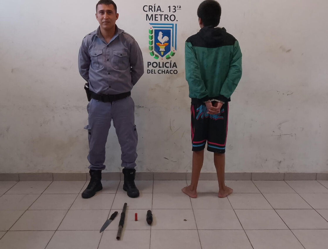 Un grave episodio de amenazas con armas se registró en la tarde de este lunes en el barrio Mapic, cuando un adolescente de 17 años fue detenido por personal policial tras ingresar al domicilio de una mujer portando un arma de fuego de fabricación casera y un cuchillo tipo carnicero.
