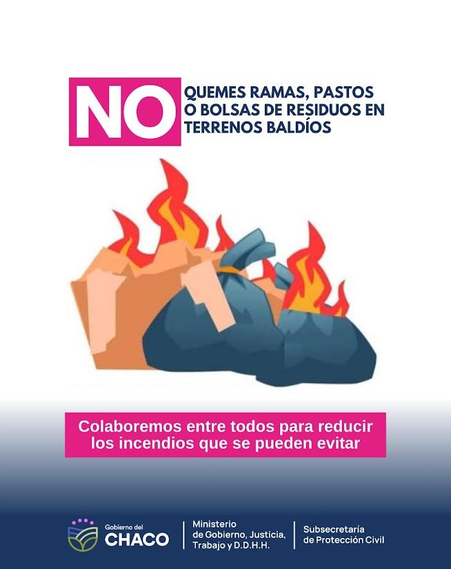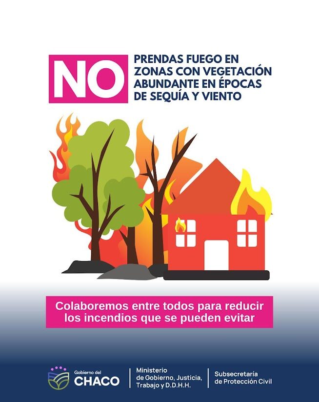El gobierno del Chaco pide colaboración a la comunidad para evitar focos de incendios y para cuidarnos entre todos.
