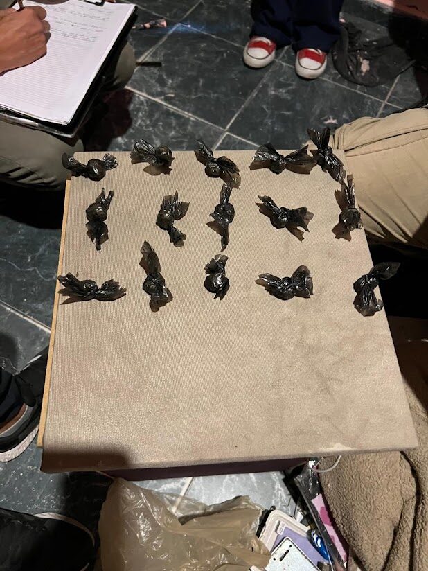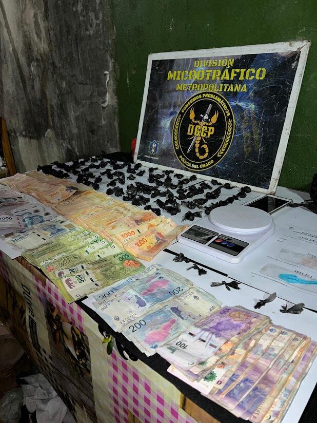 Durante el procedimiento, realizado en el domicilio señalado, se secuestraron 68 envoltorios de polietileno negro con una sustancia vegetal que, tras la prueba de campo, dio positivo para marihuana, con un peso de 86 gramos. Además, se encontraron cinco envoltorios con sustancia blanquecina, que resultó ser cocaína con un peso de 0,8 gramos. También se encontraron recortes de polietileno similares a las de las sustancias incautadas, una balanza digital de precisión, un teléfono celular marca ZTE y una suma de $ 724.500. (Pesos Setecientos Veinticuatro Mil Quinientos)
