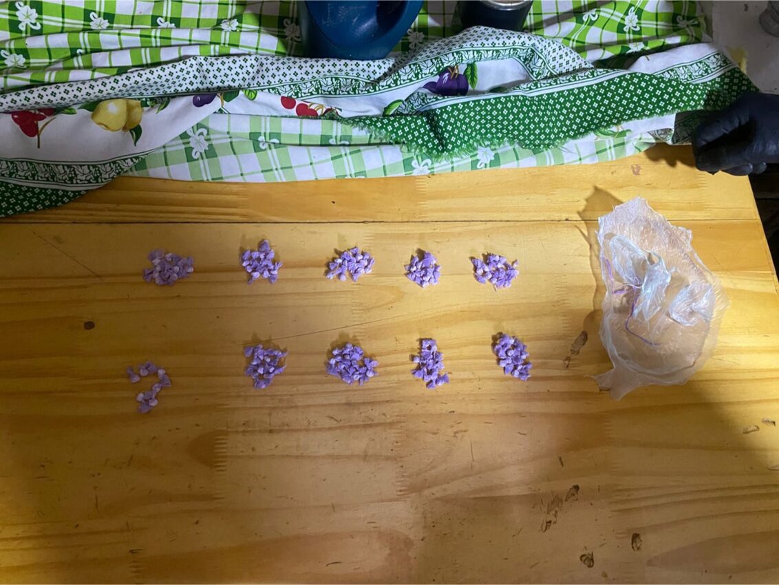 Durante el registro del inmueble, los efectivos incautaron 96 envoltorios tipo bochitas que contenían cocaína con un peso total de 14,1 gramos, además de recortes de polietileno utilizados para el fraccionamiento y una suma de $222.400 en efectivo.
