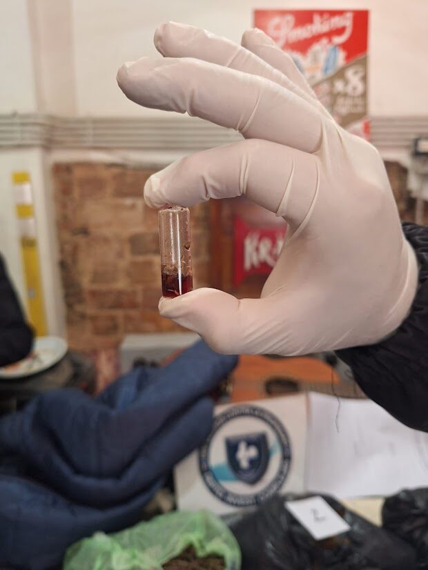 Tras una requisa del domicilio, los agentes encontraron tres bultos de polietileno con sustancia vegetal de color verde amarronada y un vaso de vidrio con material similar, los cuales, al ser sometidos a prueba de campo, arrojaron resultado positivo para marihuana, con un peso total de 461 gramos. También se secuestró una balanza de precisión en funcionamiento, comúnmente utilizada para fraccionamiento.