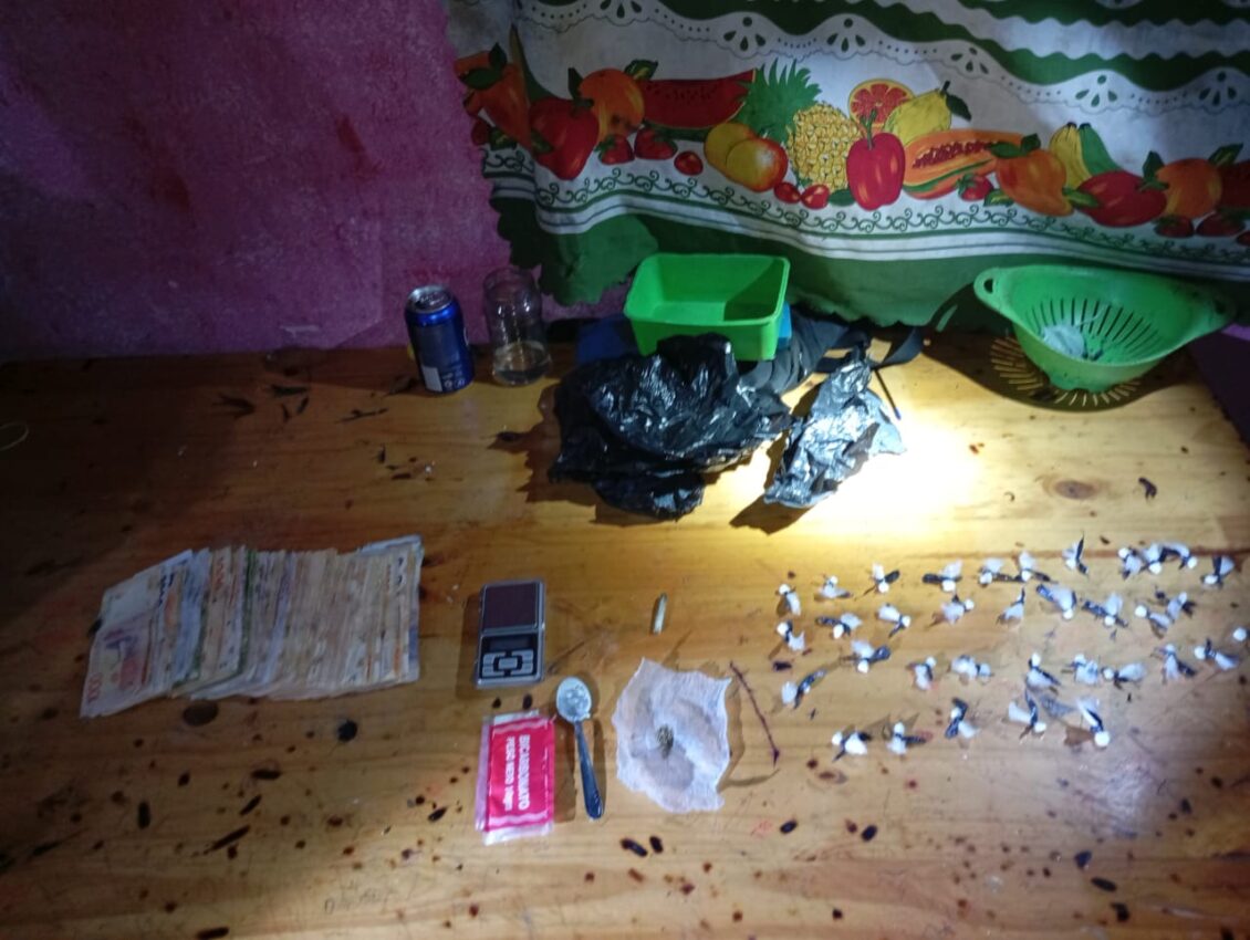 Durante la inspección del inmueble, los efectivos policiales secuestraron 68 envoltorios de polietileno transparente, anudados con retazos de polietileno negro, que contenían una sustancia blanquecina. Al ser sometida a pruebas de campo, la misma arrojó resultado positivo para cocaína, con un peso total de 19,7 gramos.