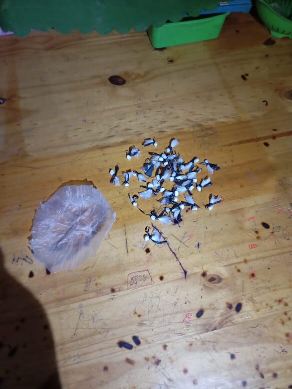 Durante la inspección del inmueble, los efectivos policiales secuestraron 68 envoltorios de polietileno transparente, anudados con retazos de polietileno negro, que contenían una sustancia blanquecina. Al ser sometida a pruebas de campo, la misma arrojó resultado positivo para cocaína, con un peso total de 19,7 gramos.