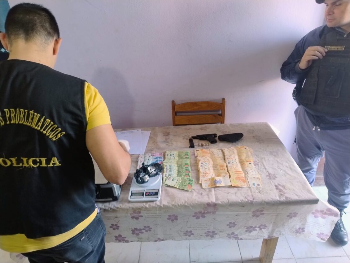 En el marco de una investigación por amenazas con arma de fuego ocurridas el pasado 25 de julio en el asentamiento Nala, la Policía llevó adelante este jueves una serie de allanamientos en el barrio Don Santiago III, que dejaron como saldo varias detenciones, el secuestro de un arma de fuego, drogas, dinero en efectivo y bienes de valor.