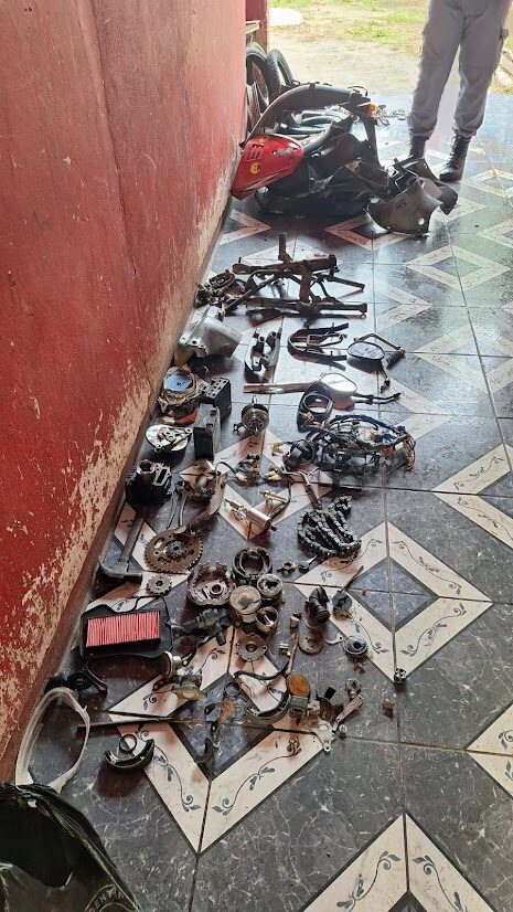 En este domicilio, residencia de V. R. (alias «Negrito»), el resultado fue negativo respecto a las armas y la motocicleta Corven Energy 110 buscadas. Sin embargo, de forma impostergable, se secuestraron numerosas motopartes de diversas marcas, lo que motivó la apertura de una nueva causa judicial. R., de 43 años y con DNI 30.166.953, fue notificado de la formación de causa y quedó en libertad.