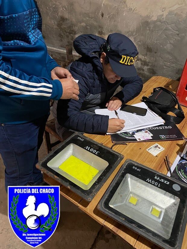 | Calle 3 y 6 bis, B° Monseñor de Carlo | – Teléfonos Motorola G8 Plus y Tecno Spark Go1 – Dos reflectores IP‑66 – 16 licencias de conducir apócrifas – Motocicleta Gilera 110 cc con numeración adulterada | D. C. V. (40) y V. E. V. (36) |