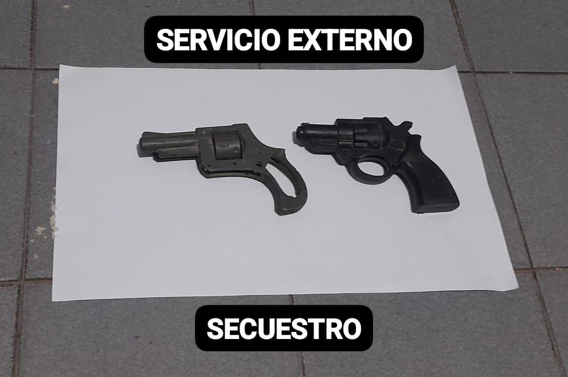 Además de las autopartes, se incautaron dos armas de fuego: un revólver calibre .22 sin cachas y aparentemente en mal estado, y una réplica de arma de fuego similar, fabricada en plástico color negro.