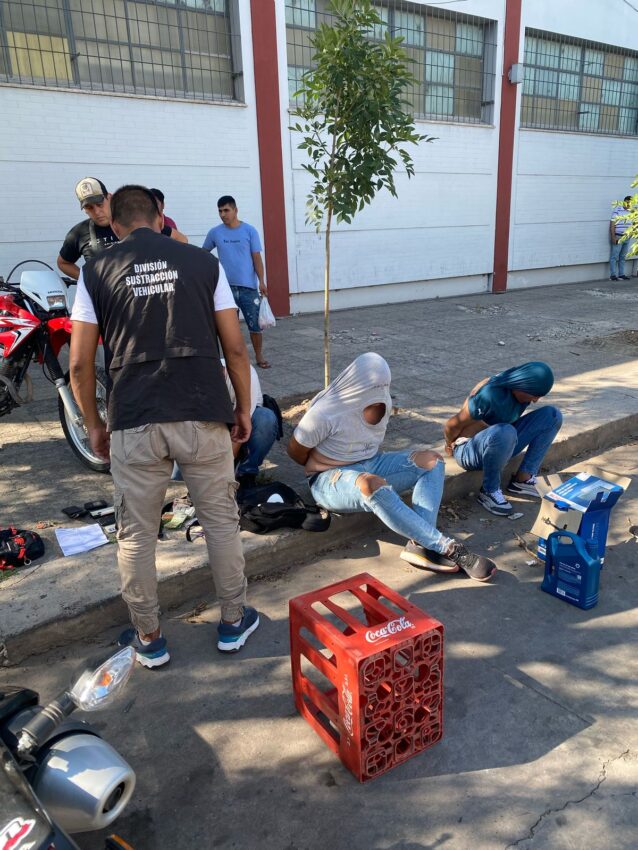 En el marco de los operativos preventivos desplegados por la División Delitos Contra la Propiedad para desalentar hechos ilícitos bajo la modalidad de hurtos, robos y robos pirañas., el personal observa el paso de dos individuos a bordo de una motocicleta sin dominio colocado y sin cascos de seguridad en la intersección de AV. 25 de Mayo y Calle 10, estos de manera imprevista al notar presencia policial aceleran la marcha pasando el semáforo en rojo, se dio inicio a un seguimiento controlado, logrando detener su marcha en Avenida Coronel Falcón N°50, que al descender del móvil, estos sujetos comenzaron a insultar y propinar golpes de puño y patadas hacia el personal, oponiendo resistencia, por lo que haciendo uso de la fuerza en la medida de lo necesario se procedió a la reducción de los mismos.