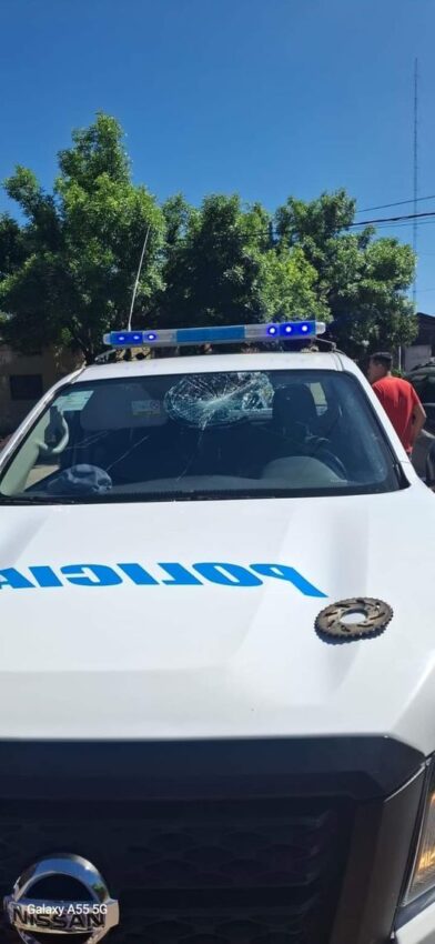En la mañana, por la avenida Hernandarias de Resistencia, un hombre de 42 años tiró un piñón de motocicleta al parabrisas de una camioneta de la Comisaria Tercera Metropolitana en la que viajaban dos efectivos, hiriendo en el brazo a uno. Un móvil cercano de la División Patrulla Preventiva demoró al agresor y secuestró el piñón corona.