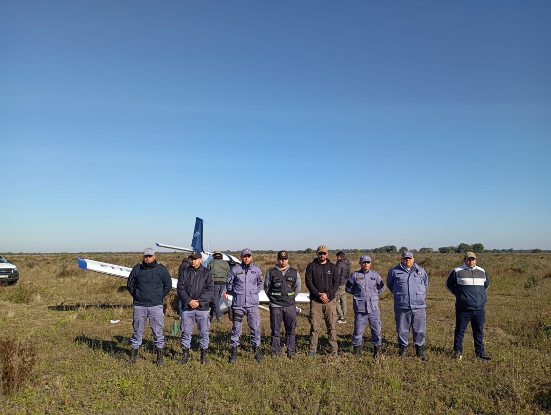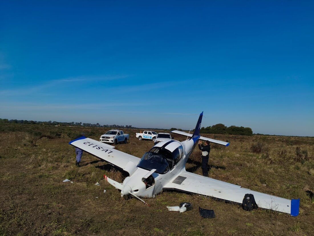 A bordo viajaban el piloto Oscar Jaramillo (28 años, de nacionalidad colombiana) y el copiloto Cristofer Vidalon (26 años, peruano). Ambos habían despegado desde Morón (provincia de Buenos Aires) y lograron posarse sin sufrir lesiones.