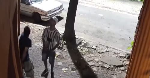 Abrazados contra la pared del negocio, los delincuentes esperaron el momento justo para atacar y se llevaron una guirnalda de luces, entre otras cosas. Dos…