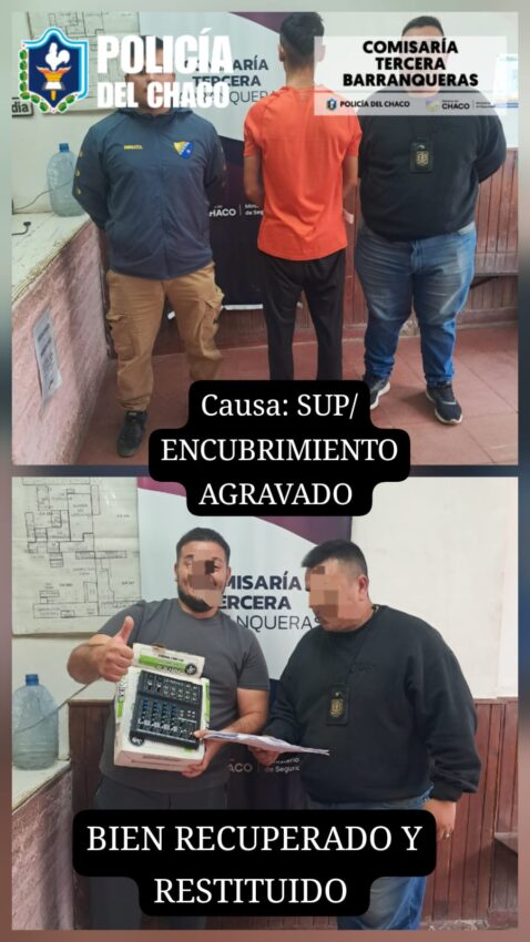 Se trataba de una consola de audio Mackie Mix8 compacta, en su caja y varios cables. Al pasar un rato, un hombre de 32 años se acercó hacia la comisaría a denunciar la sustracción del mismo bien, el cual se le fue devuelto de inmediato. La causa pasó a caratularse como “supuesto encubrimiento agravado”.