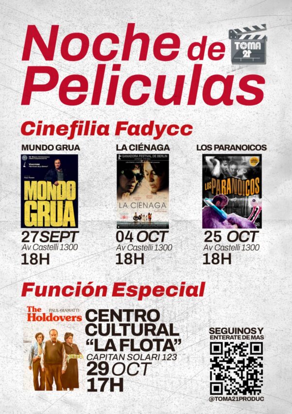 Así, este Domingo 29 de Septiembre, se podrá ver la película «The Holdovers» de Paul Giamatti en el Centro Cultural La Flota —Cap. Solari 123—, a partir de las 17:00 hrs, con toda la temática en cuestión.