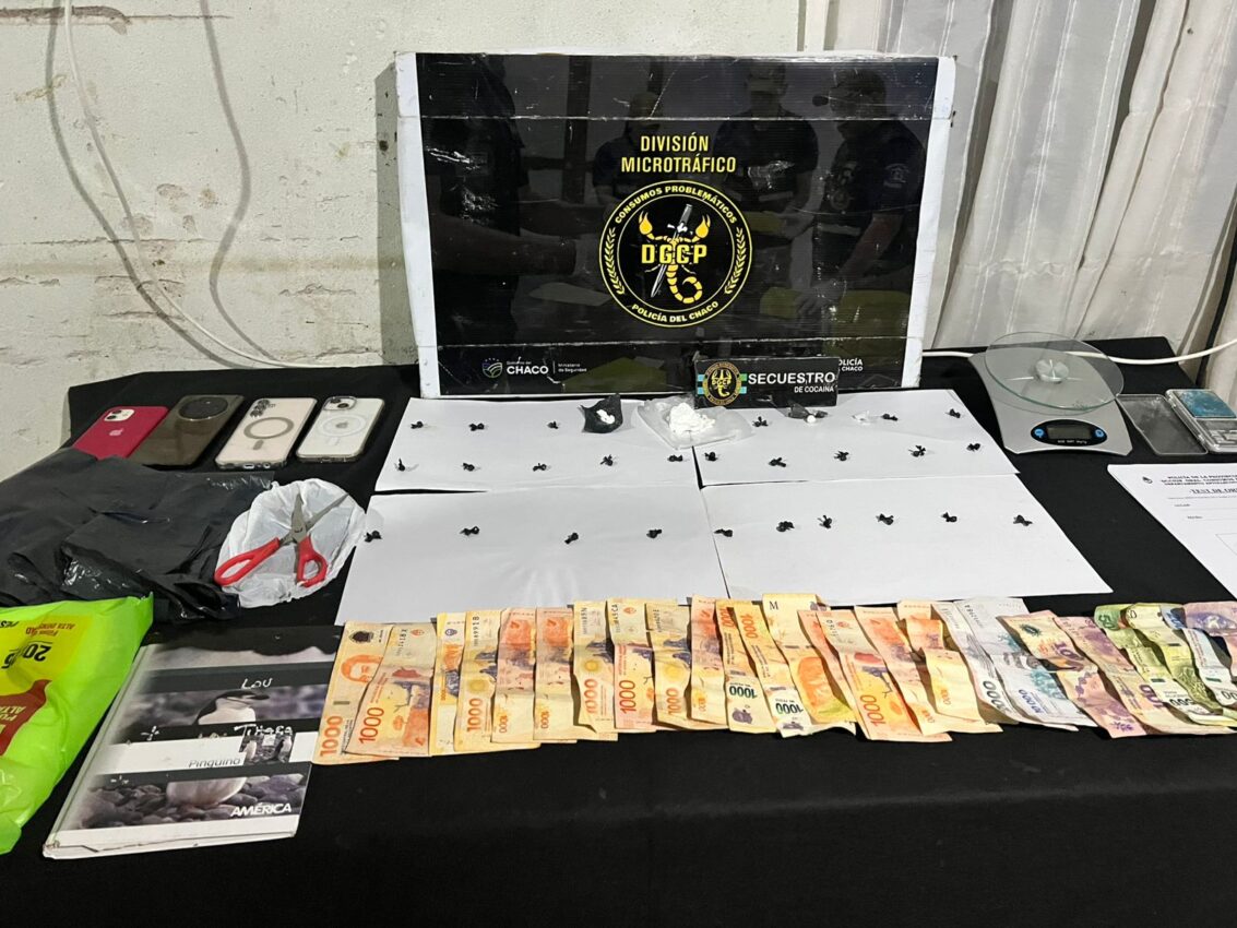 Asimismo, incautaron dos balanzas de precisión, recortes de polietileno utilizados para fraccionamiento, una tijera, anotaciones vinculadas a la presunta comercialización y 29.900 pesos en efectivo.