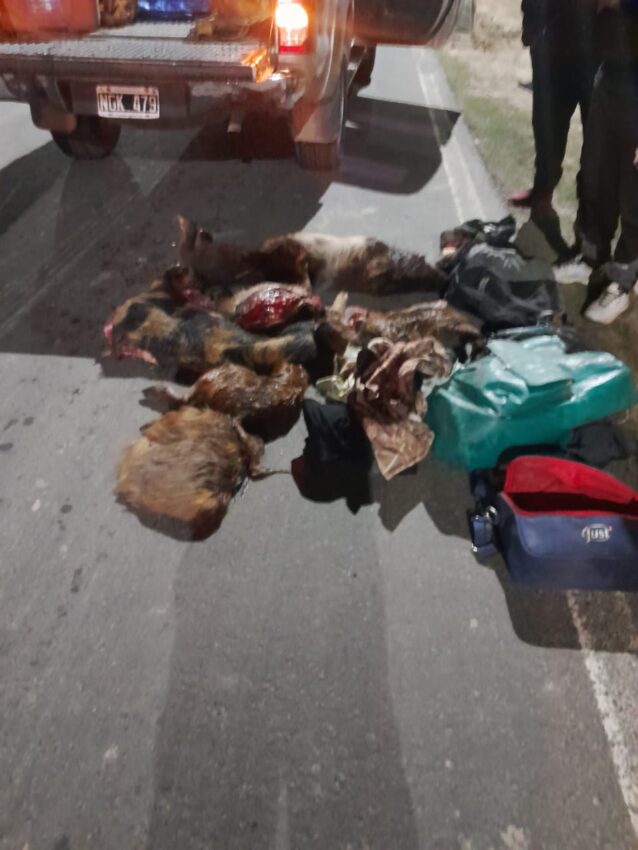 En la caja del vehículo se halló un chancho cimarrón sin vida, desviscerado y con cuero, junto con una cabeza del animal, dos medias reses con cuero, dos costillares con paleta y cuero, y dos cuartos con vacío y cuero. El conductor no contaba con habilitación ni permisos de caza.