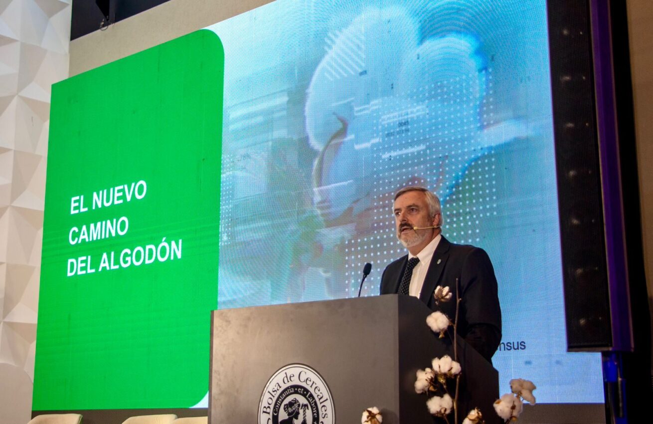 El gobernador Leandro Zdero, junto al ministro de Producción y el Desarrollo Económico Sostenible, Oscar Dudik, acompañaron este jueves en la Bolsa de Cereales de Buenos Aires el lanzamiento de “El nuevo camino del algodón”, en el marco de la presentación del primer algodón con tres eventos Biotecnológicos, que tiene proyección comercial y permitirá bajar la utilización de agroquímicos, como así también brindar más protección frente a insectos y malezas.