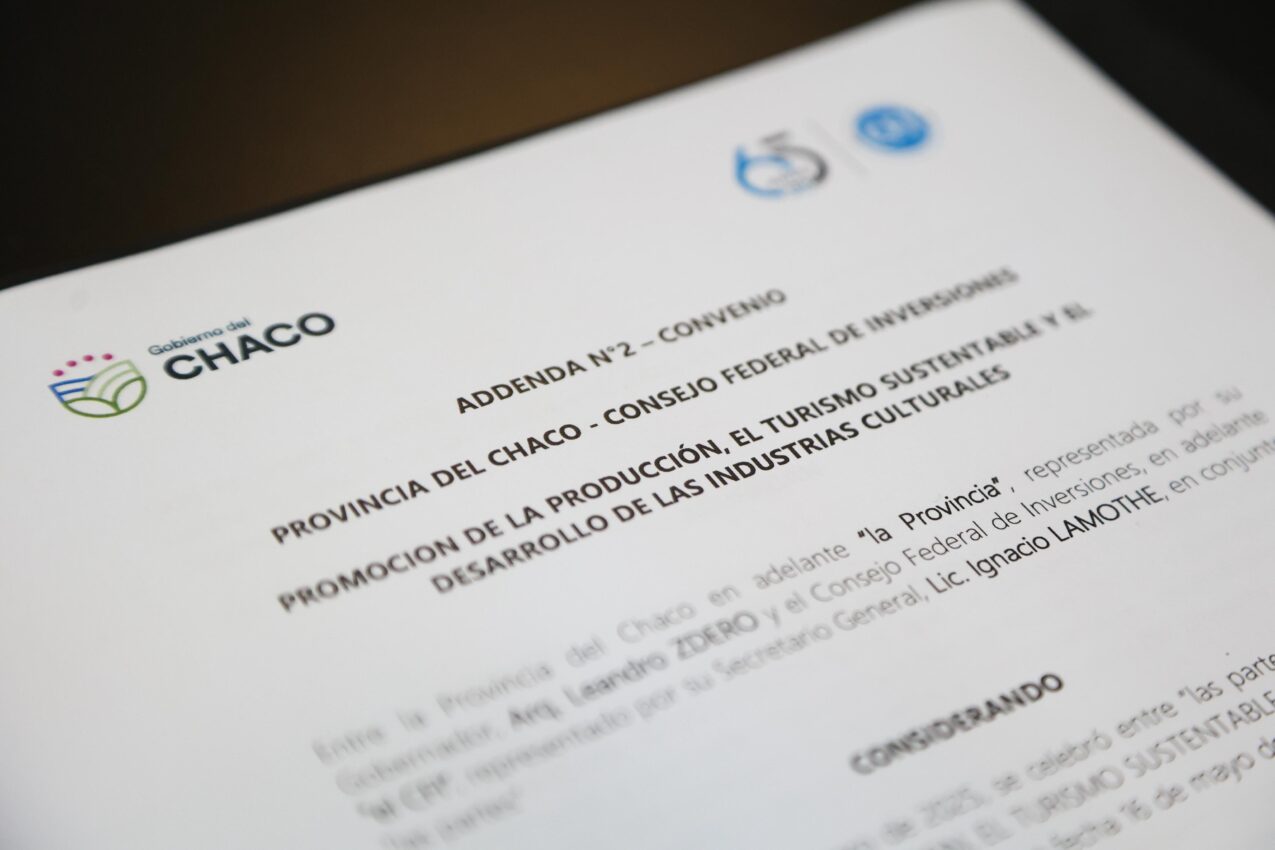 Este jueves, el gobernador Leandro Zdero firmó un nuevo convenio con el titular del Consejo Federal de Inversiones (CFI), Ignacio Lamothe, con el objetivo de potenciar el desarrollo productivo, el turismo y las industrias chaqueñas.