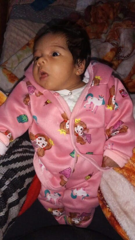 | Mía Sánchez (1 mes) | Semi robusta | Tez morena, cabello negro | Aros de oro con piedra roja | Conjunto de algodón rosado |