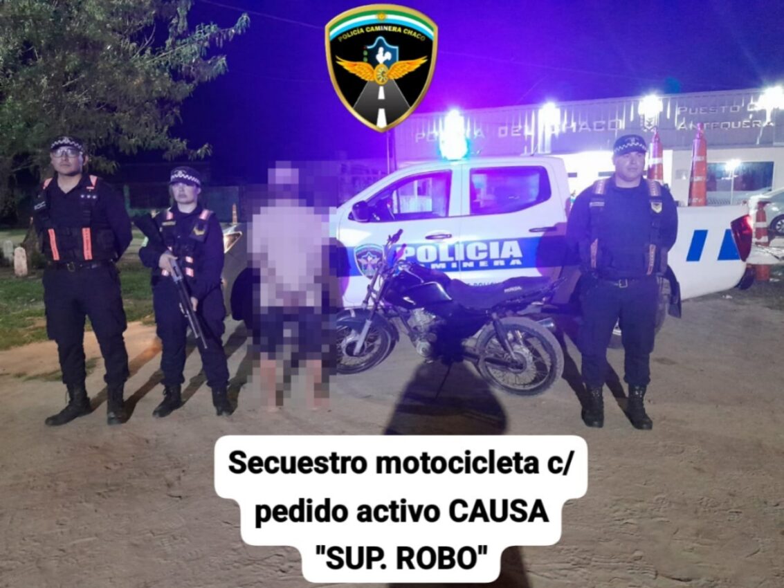 Al momento del control, los agentes controlaron el estado del rodado mediante el padrón unificado de motocicletas, arrojando como resultado pedido de secuestro en causa supuesto robo a solicitud de la comisaria primera de la ciudad Barranqueras.