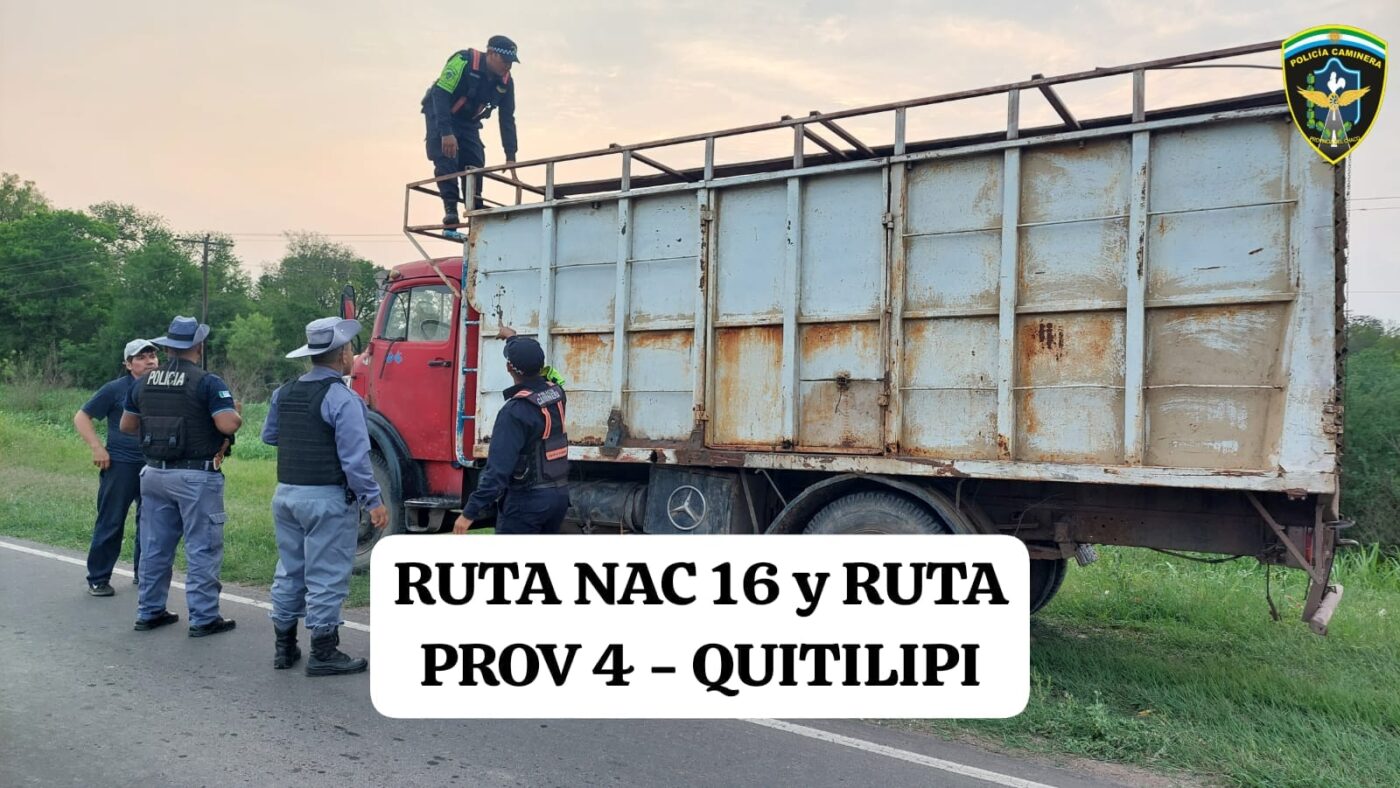 Agentes viales en operativo en ruta Nacional 16 km y ruta Provincial 4 de Quitilipi, detuvieron la marcha de una camioneta, guiada por un hombre de 30 años, trasladaba 5 animales Bovinos. Al momento del control constataron que la guía no poseía control de despacho policial.