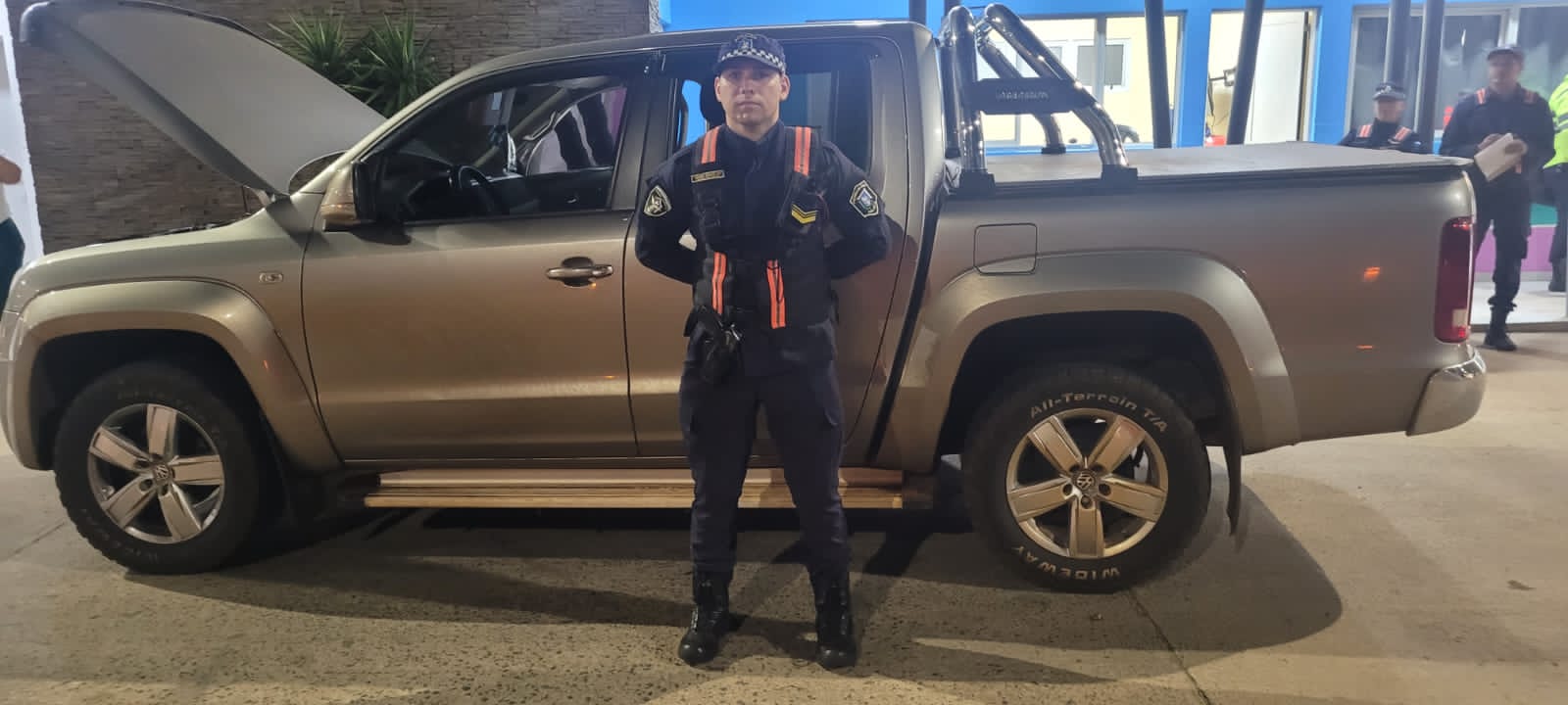 Se trata de una camioneta marca Volkswagen modelo Amarok. Al momento del control descubrieron que presentaba pedido activo desde fecha 31/07/2020 a solicitud de la Unidad Federal de Salta.