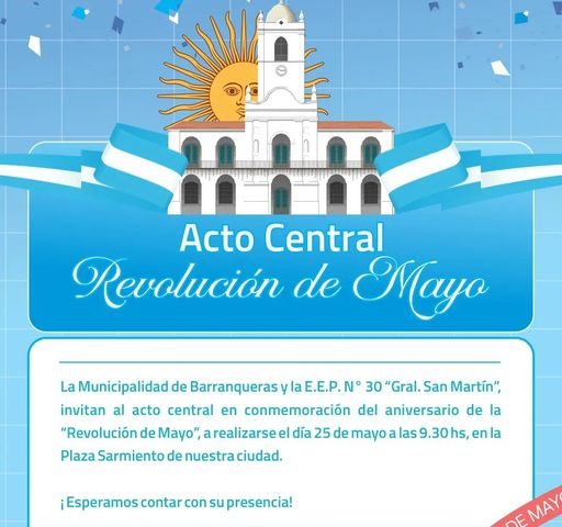 La Municipalidad de Barranqueras y la E.E.P. N° 30 Gral José de San Martín, invitan a toda la comunidad a participar del Acto Central en…