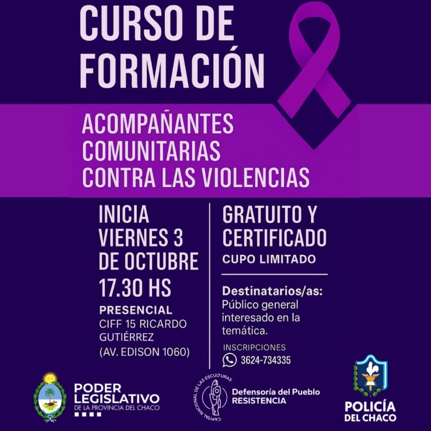 El próximo 3 de octubre dará inicio en el CIFF Nº15 Ricardo Gutiérrez (Av. Edison 1060, Resistencia) el curso de formación “Acompañantes Comunitarias contra las…