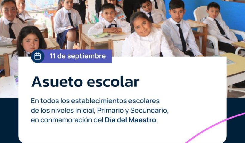 Según lo establece el calendario 2024, este miércoles 11 de septiembre, será asueto escolar por el Día del Maestro, en homenaje a Domingo Faustino Sarmiento.…