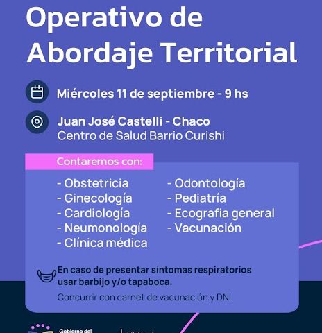 Este miércoles, jueves y viernes el Ministerio de Salud llevará a cabo nuevos Operativos de Abordaje Territorial en Juan José Castelli, El Espinillo y Villa…