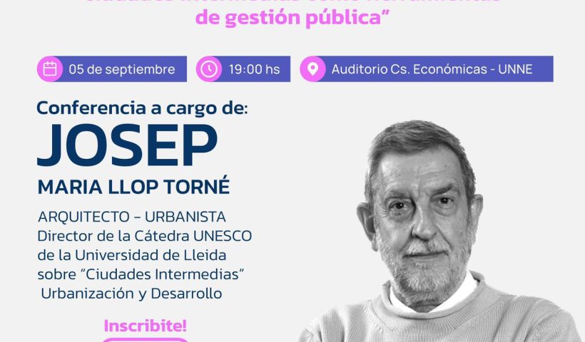 Este jueves 5 de septiembre, a las 19 Hs, en el Auditorio de Ciencias Económicas, UNNE, el director de la Cátedra UNESCO “Ciudades intermedias, urbanización…