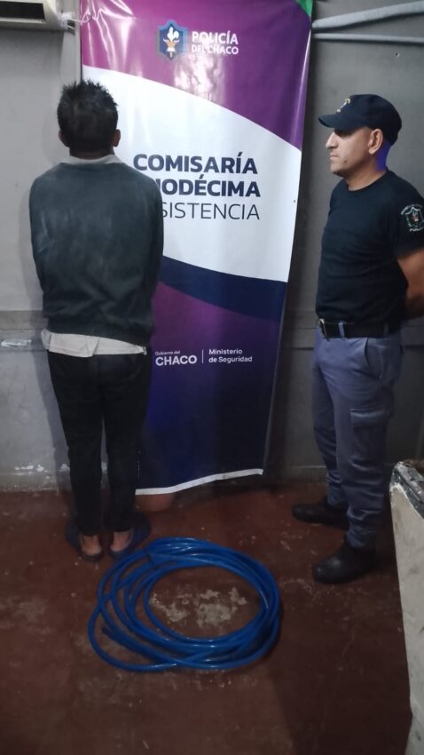 El procedimiento tuvo lugar alrededor de las 04:40 en la intersección de la avenida Guerrero y la calle Mitre. Durante una recorrida de prevención, los agentes interceptaron al sospechoso mientras trasladaba elementos de dudosa procedencia: una manguera de riego azul de aproximadamente 7 metros y un cuchillo tipo serrucho.