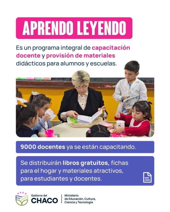 El objetivo de Aprendo leyendo es que los niños aprendan a leer y a comprender textos a una edad temprana, para luego aprender leyendo otros contenidos. Al respecto, la ministra de Educación, Sofía Naidenoff, aseguró tener «muchas expectativas» puestas en la implementación de esta estrategia en las aulas de la provincia, que además comprende la distribución de materiales de apoyo, libros para el aula y listas de trabajo para el alumno de primero a tercer grado. Naidenoff adelantó que a partir del 15 de abril comenzará a llegar todo este material, al que definió como «altamente significativo», destacando que dará lugar a «un cambio de paradigma» y que dejará en las escuelas chaqueñas «la capacidad instalada para que el chico salga del tercer grado comprendiendo lo que lee, que es el paso definitivo para empezar los cambios, y que de tercero a cuarto grado vaya afianzando esa fluidez y comprensión». «Esto, de acuerdo a lo que nosotros estamos trabajando con la fundación, nos garantiza que en 8 meses los chicos aprendan a leer, y que comprendan lo que leen; eso representa un salto cualitativo», dijo la ministra, añadiendo que «si el chico no lee, no comprende lo que lee, no hay un pasaje de ciclo adecuado”.