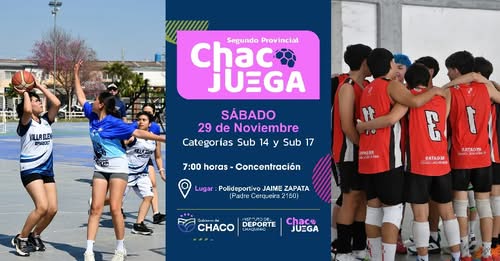 Este sábado 29 de noviembre se estará realizando la final provincial del programa “Chaco Juega” en las categorías sub 14, sub 16 y sub 17.