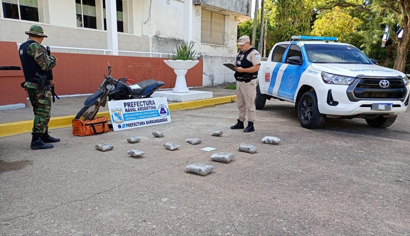 Durante un operativo de patrullaje realizado ayer, personal de la Prefectura Naval Argentina aprehendió a un hombre que transportaba más de ocho kilos de marihuana en la ciudad de Barranqueras, provincia de Chaco.