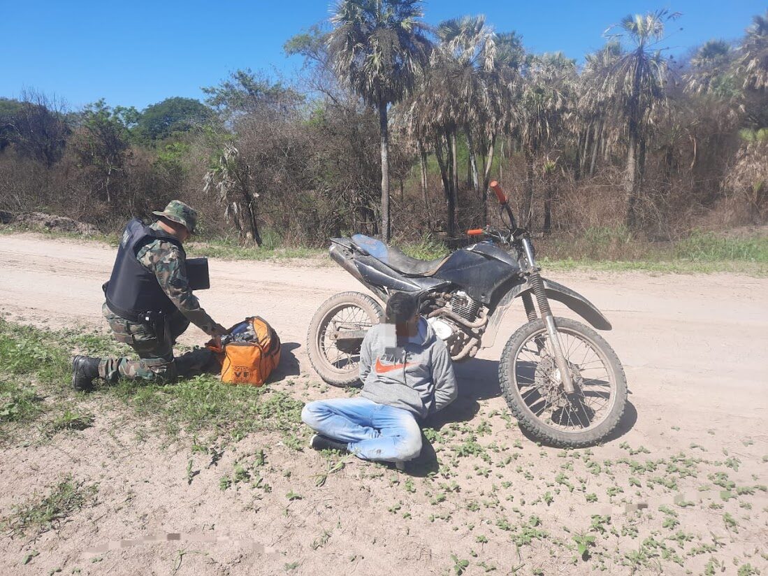 El procedimiento tuvo lugar en un puente sobre la Ruta Provincial N°1, donde los efectivos de la Fuerza interceptaron una motocicleta e identificaron a su conductor. El hombre llevaba un bolso que contenía once paquetes de flores de marihuana.