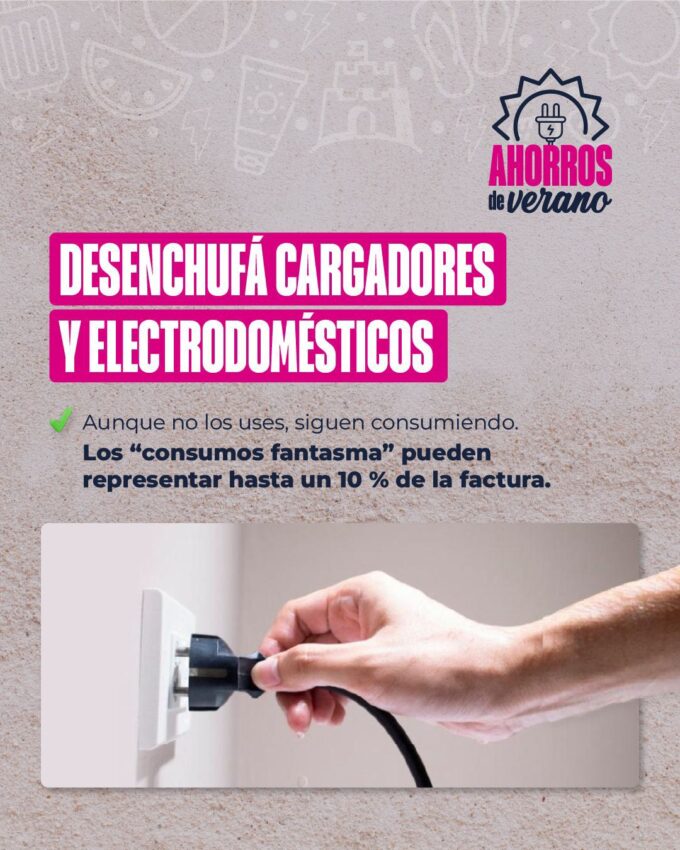 -Desconectar aparatos en modo stand-by: aun “apagados”, algunos electrodomésticos consumen energía. Este consumo invisible —o “fantasma”— puede representar hasta un 10% de la factura.