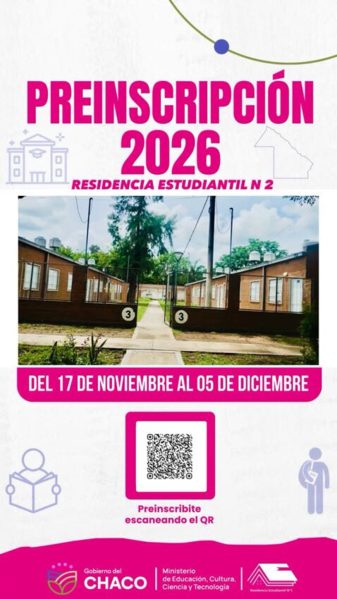 El coordinador de la Residencia Estudiantil 1, Rodrigo Castillo, anunció la apertura del período de preinscripción para estudiantes del interior chaqueño, que necesitan un lugar donde vivir para poder cursar sus estudios universitarios y/o terciarios.*