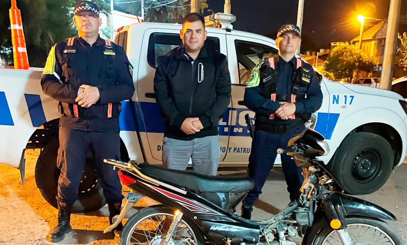 El hecho sucedió anoche, un efectivo vial que se hallaba de franco de servicio, intervino al observar a dos jóvenes que trasladaban una motocicleta, los cuales demostraban gestos de nerviosismo. Los que minutos después se dieron a la fuga cuando se identifica como empleado policial.