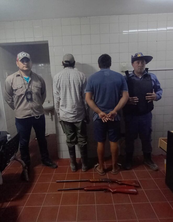 En el primer allanamiento, realizado en un domicilio del paraje Puente Mandarina perteneciente a S. A, conocido como “Ranita”, los efectivos obtuvieron resultado positivo tras una minuciosa requisa. En el lugar se halló un arma de fuego que resultó de interés para la causa, motivo por el cual el ciudadano fue conducido para continuar con las actuaciones judiciales.
