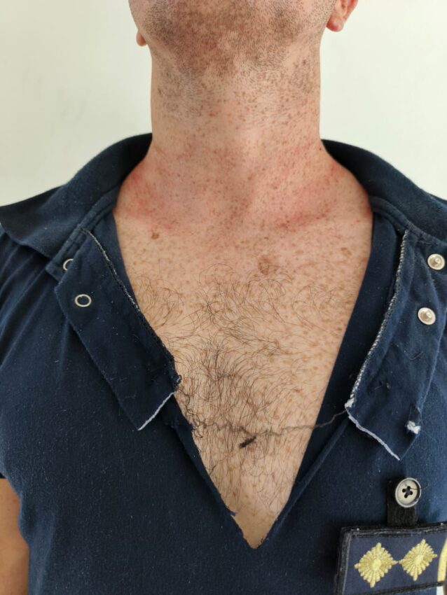 Durante el procedimiento, intervino un hombre de 39 años de edad, quien tomó por el cuello e intentó asfixiar al jefe de la comisaría. El agresor fue inmediatamente reducido por el personal policial, constatándose posteriormente que se trataba de un efectivo policial con jerarquía de sargento y prestación de servicios en el Departamento de Seguridad Rural General San Martín, quien se encontró de franco de servicio al momento del hecho.