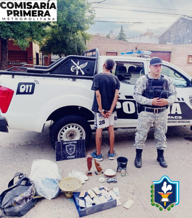 La Policía intercepto a un hombre de 36 años con actitudes sospechosas y elementos varios.