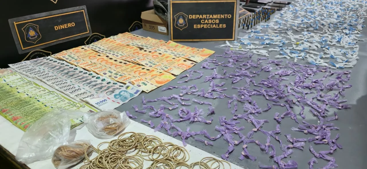 Al ingresar al lugar, se retuvo a los sospechosos y se secuestro 650 dosis de cocaína con un peso total de 600 gramos, dos armas de fuego -una de ellas con pedido de secuestro-, 120 mil pesos, telefonos y dos motos con pedido de secuestro.