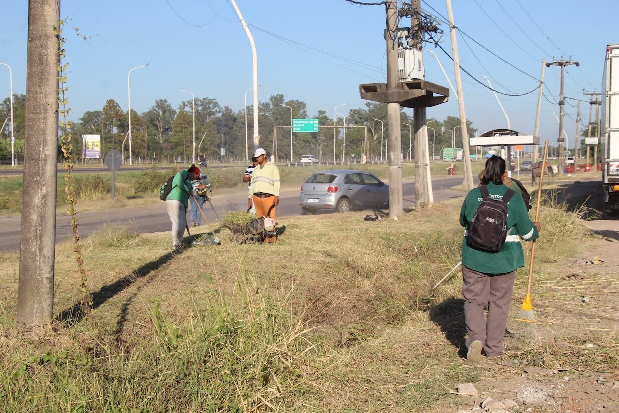 Daniel Ocampo, coordinador de los Centros Comunitarios Municipales, explicó que esta tarea se realiza desde la intersección con la ruta nacional 11, en el acceso norte, y se extenderá a lo largo de las colectoras de la “Nicolás Avellaneda”.