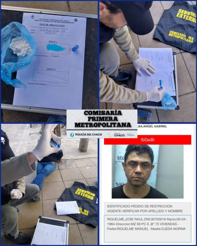 El detenido fue identificado como J. R. R., de 41 años, domiciliado en Barranqueras, quien al momento de ser requisado llevaba consigo una bolsa de polietileno celeste con una sustancia blanquecina.