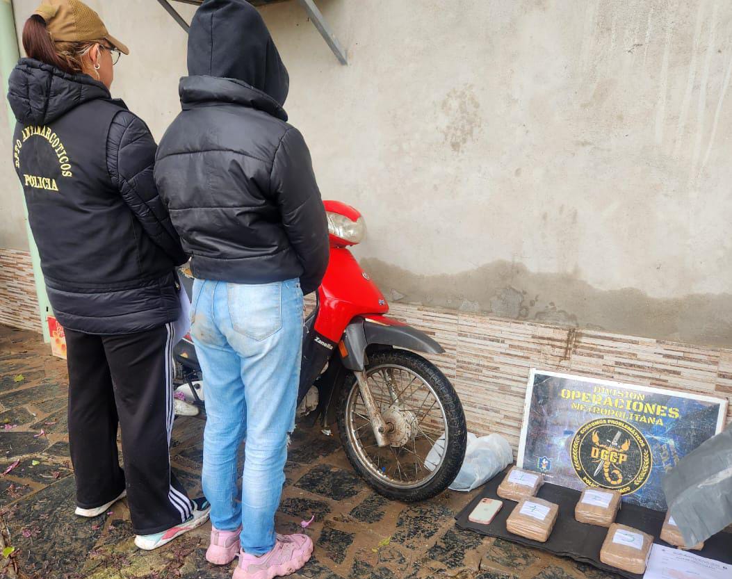 El operativo comenzó alrededor de las 16 horas, tras un aviso recibido en la Guardia de Prevención de la División de Operaciones Metropolitanas. La denuncia indicaba que una mujer a bordo de una motocicleta tipo 110 estaría por comercializar estupefacientes en la zona de la salita de primeros auxilios del barrio.