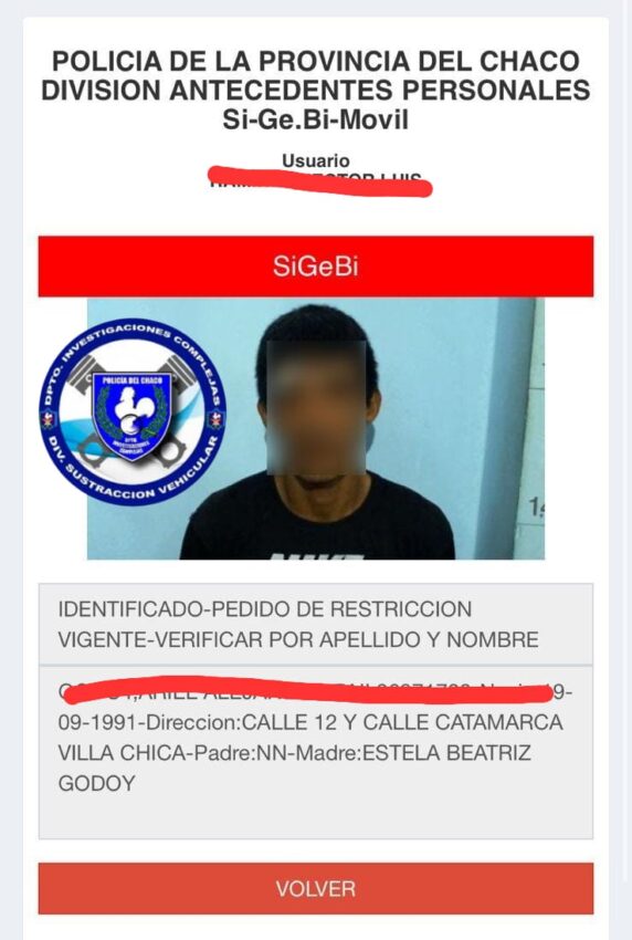 Tras identificarse como G., los agentes verificaron sus datos en el sistema SIGEBI, constatando que figuraba con alerta roja. A través de la División Antecedentes Personales se confirmó que sobre él pesaba una orden de aprehensión y detención (N° 20245, inciso 2), librada el 4 de julio de este año en el marco de la causa “Supuestas amenazas en contexto de violencia de género” (Expediente N° 130/147-2405-E/2025), con intervención del Equipo Fiscal N° 11, a solicitud de la Comisaría Décima de Resistencia.